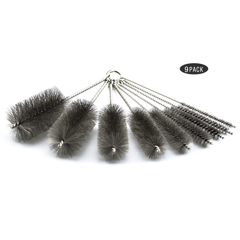 Pipe Cleaning Brush Set Stainless Steel Bristles, Stainless Steel Pipe Brush Steel Bottle Brush 9 Piece Variety Pack for Auto Parts, Bottles, Guns, Tubes, Etc.