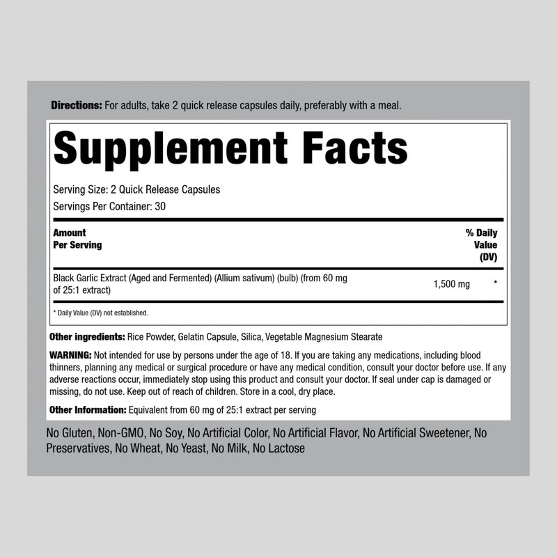 Piping Rock Black Garlic Supplement 1500mg | 60 Capsules | Aged and Fermented | Non-GMO, Gluten Free