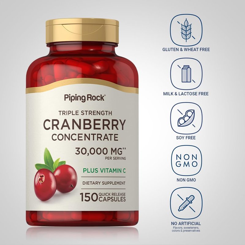 Piping Rock Cranberry Pills for Women | 30,000 mg | 150 Capsules | Concentrate Extract Plus Vitamin C | Triple Strength | Non-GMO, Gluten Free Supplement