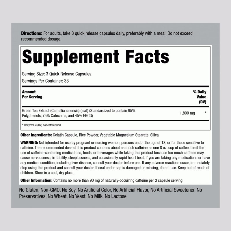 - Standardized to 95% Polyphenols, 75% Catechins, 45% EGCG