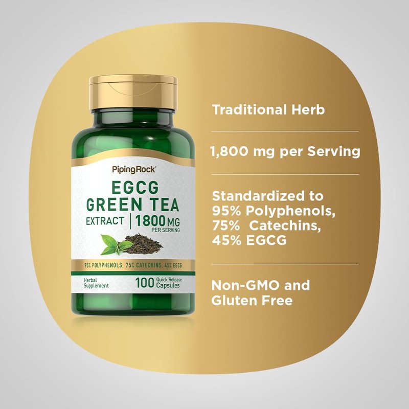 EGCG supplies many benefits for overall health and well-being. Piping Rock EGCG Green Tea Extract is gluten free and non-GMO, providing 1800 mg of green tea extract in quick release capsules per serving. Now you can benefit from green tea’s star player in Piping Rock’s easy-to-swallow standardized EGCG green tea extract supplements!