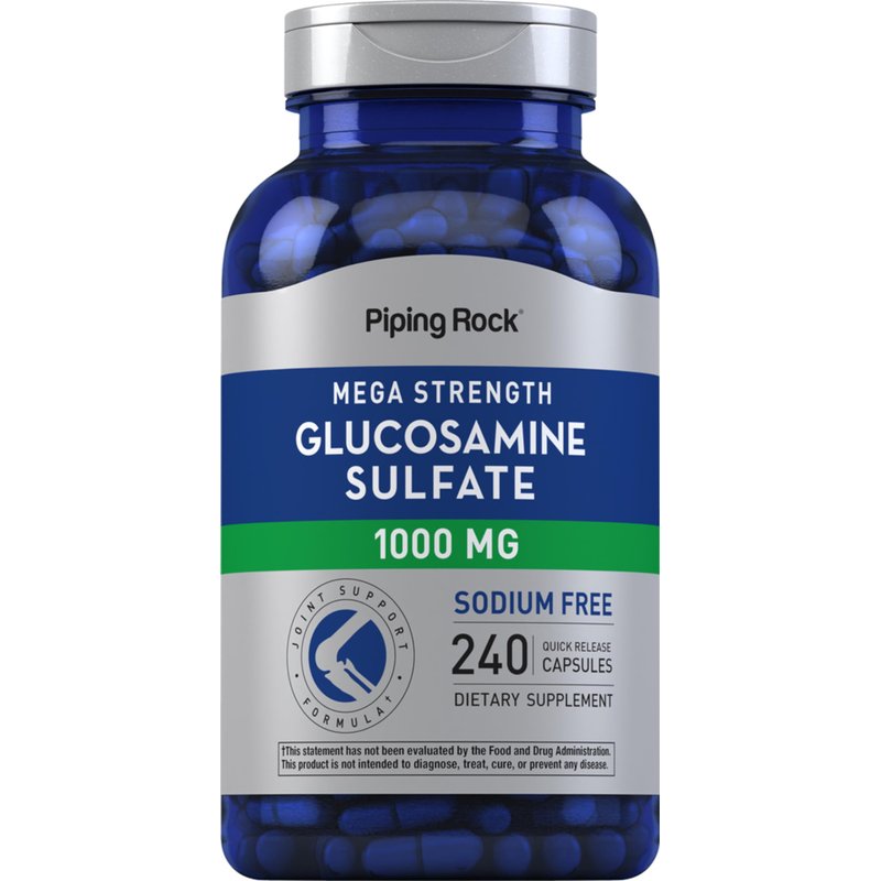 Piping Rock Glucosamine Sulfate 1000mg | 240 Capsules | Mega Strength | Joint Support | Sodium Free | Non-GMO & Gluten Free Supplement