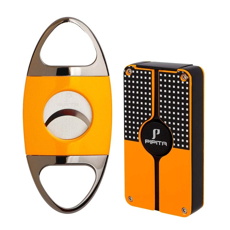 PIPITA Cigar Lighter and Cigar Cutter Set (2pcs/Set), Jet 3 Flame Cigar Lighter Torch and Cigar Cutter , Packing with Nice Gift Box (Yellow)