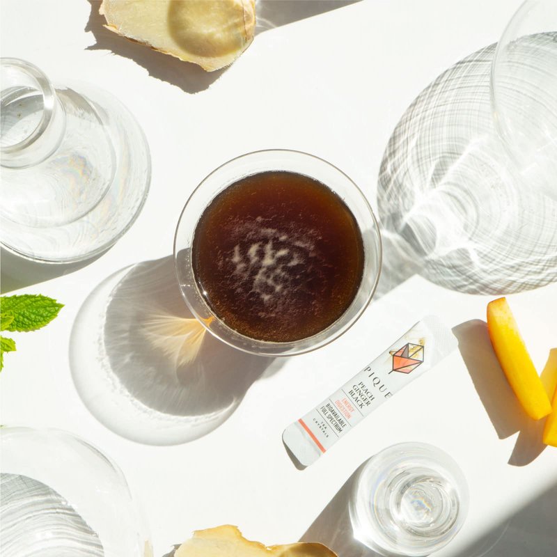 Pique Organic Peach Ginger Tea Crystals - Caffeinated Black Tea For Energy, Prebiotic Polyphenols Support Healthy Digestion - 14 Single Serve Sticks (Pack of 1)