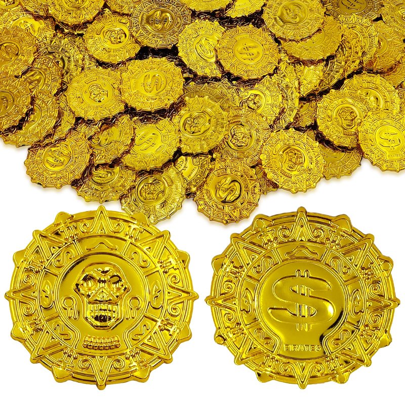 - Quality Materials: These coins are made of plastic, full of luster, not easy to fade and deform, and can meet your needs for long-term use. Perfect party favors for a pirate theme party, Halloween party, birthday party, scavenger hunting, treasure hunting, carnival or pinatas,play as game chips, stage props, centerpiece decoration, party decoration, treasure box, treasure jewels, etc