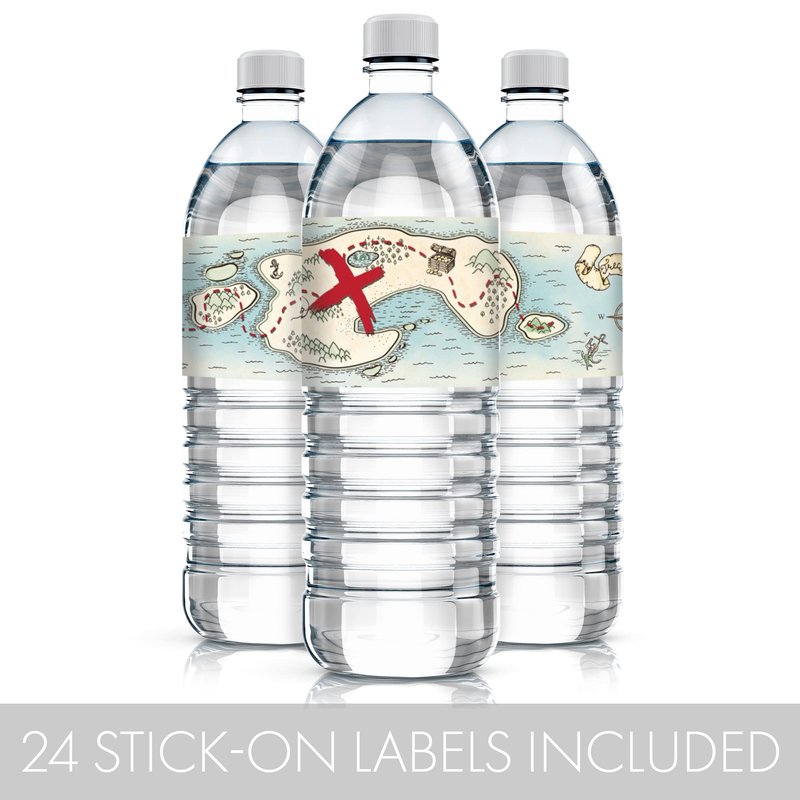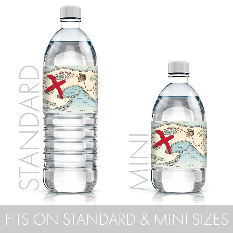 - WATER BOTTLES NOT INCLUDED. Labels fit most standard size and mini water bottles to make pirate party favors.