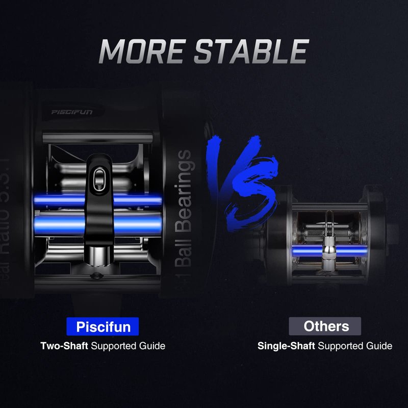 - Super Smooth: Piscifun’s Round Baitcasting reels have premium 6+1 double shielded stainless steel ball bearings for smooth operation