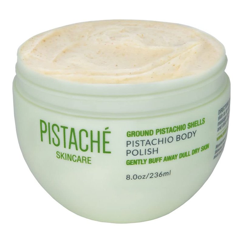 Pistaché Skincare Pistachio Oil Body Polish with Ground Pistachio Shells + Exfoliating Scrub + Hydrating and Nourishing + Moisturizing and Softening + Vitamin E + Antioxidant Protection, 8 oz