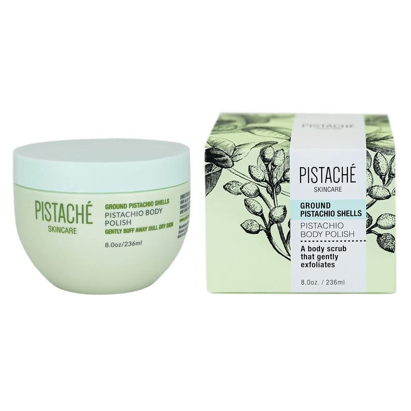 Gently buff away dull dry skin to reveal a rejuvenated silky-smooth complexion using our Pistachio Body Polish. This one of a kind formula utilizes freshly ground pistachio shells to exfoliate and eliminate all unwanted impurities from the skin, so you’ll look and feel visiblably radiant. The subtle scent of our deliciously rich pistachios will be what draws you in, but the hydrated and supple skin will be what keeps you coming back for more.
