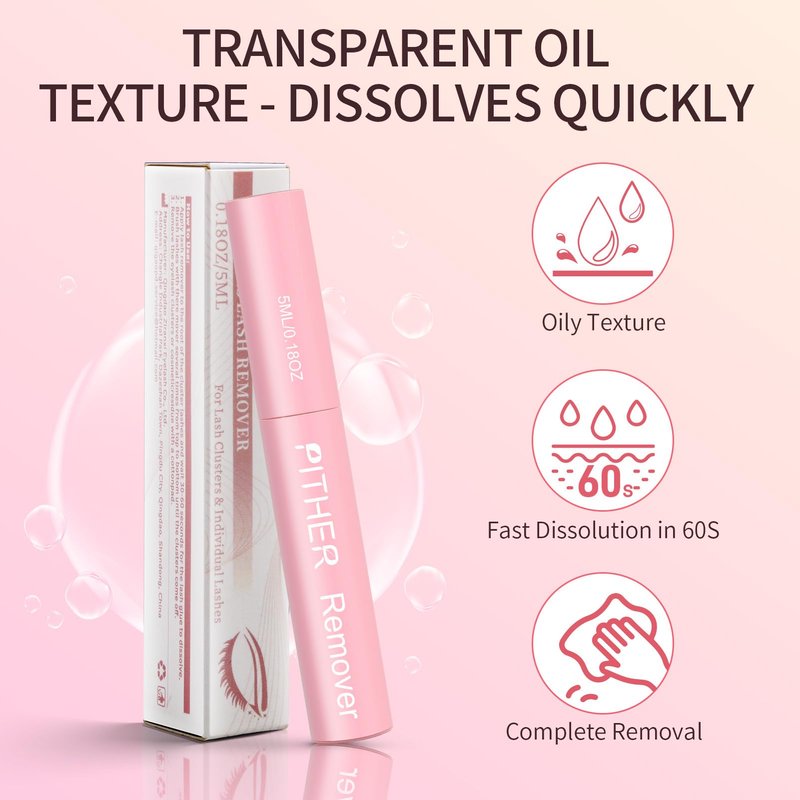 PITHER Lash Remover for Lash Extensions 10ml, DIY Eyelash Extension Remover Self-Use at Home Eyelash Glue Remover Non-irritating Soothing Oil Texture for Lash Clusters