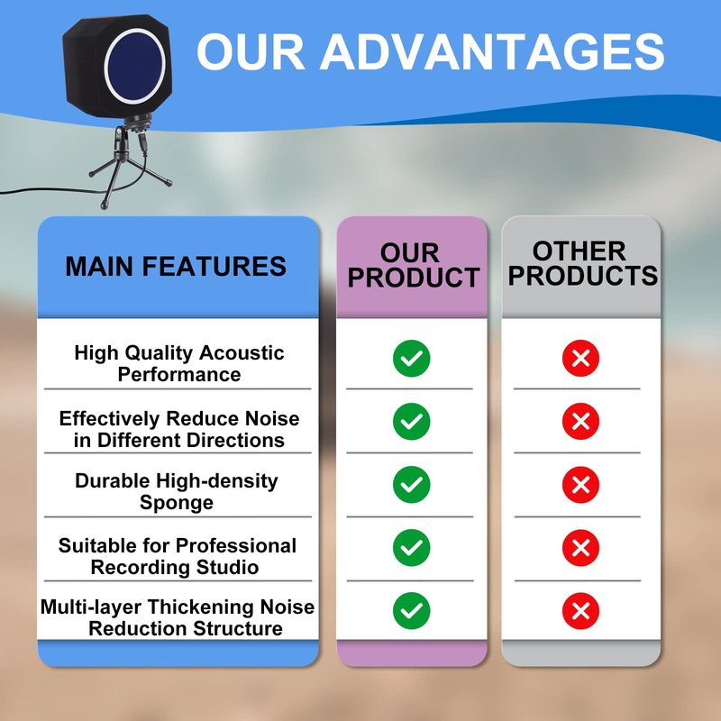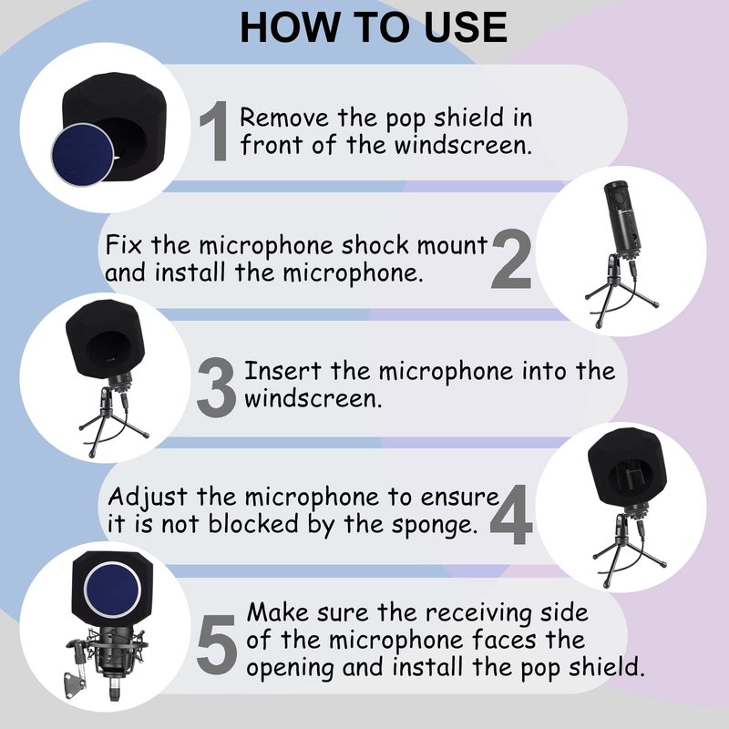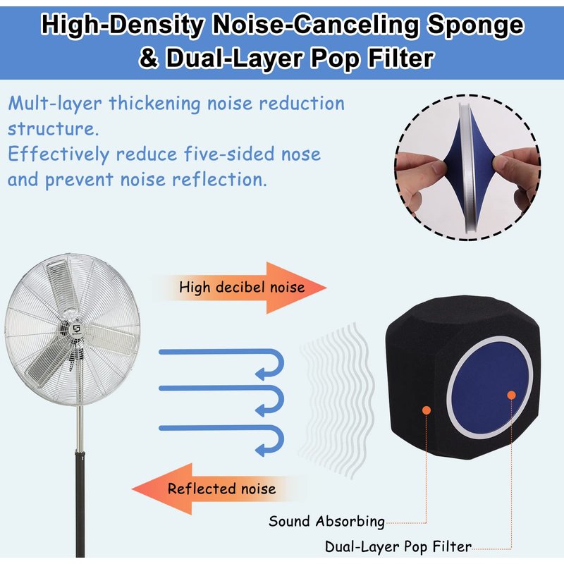 - š¤ćHigh-Density Noise-Canceling SpongećMicrophone foam screen O filter adopts a 5-sided seal design to effectively reduce noise in different directions, captures pure human voices, it uses a high-quality, studio-grade noise-canceling sponge that can effectively capture and absorb noise and prevent sound reflections from being absorbed by the microphone.