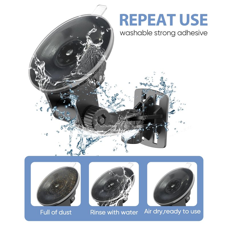 【reusable 68mm suction cup】Suction cup mount for reverse camera monitor adopts PVC double-layer suction cups with a diameter of 68mm, which ensures a seamless vacuum between the bracket and the windshield. Moreover, it does not damage the glass and is reusable, making it easy for you to adjust the position at any time.