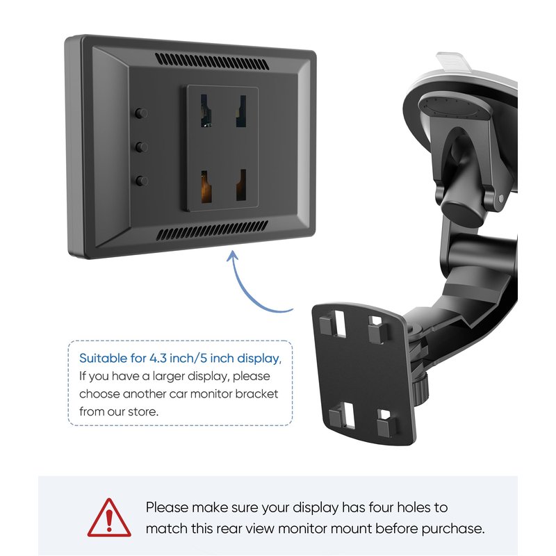 - 【Tips】This rear view camera monitor bracket is only for 4.3/5 inch monitor with four holes on the back (please check the picture), if you have a bigger backup camera monitor, please consider other bigger size brackets in our store.