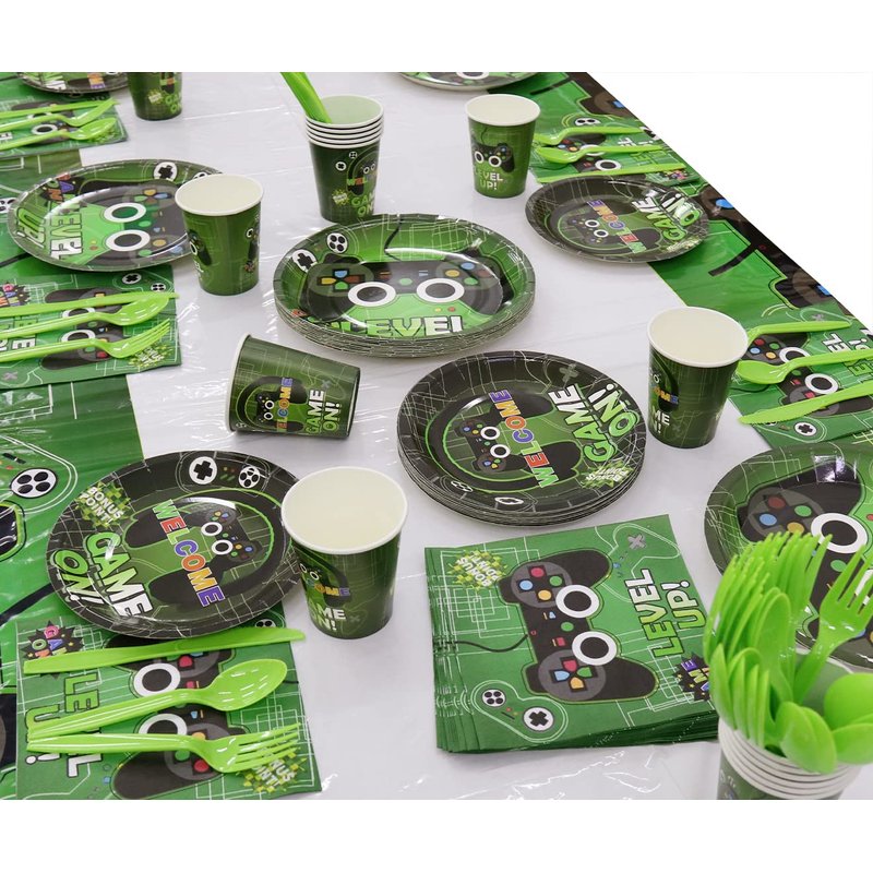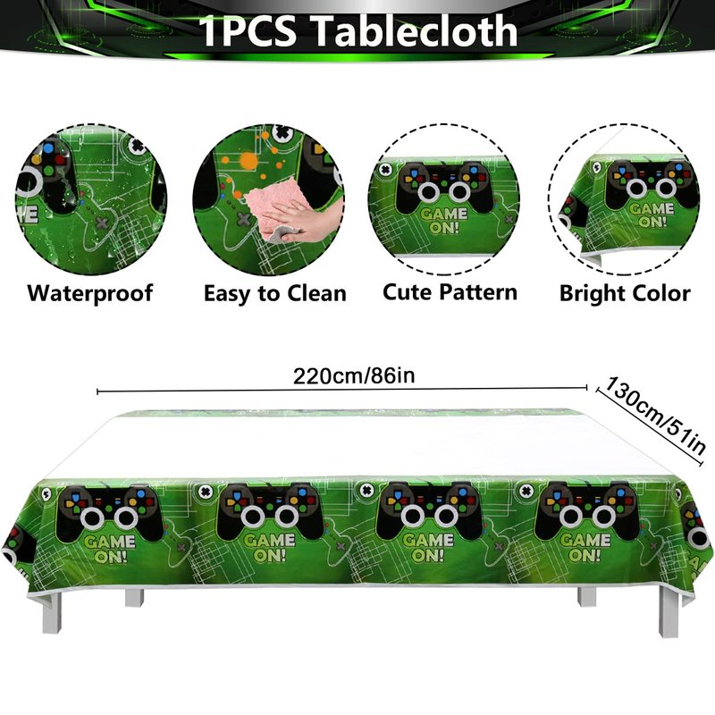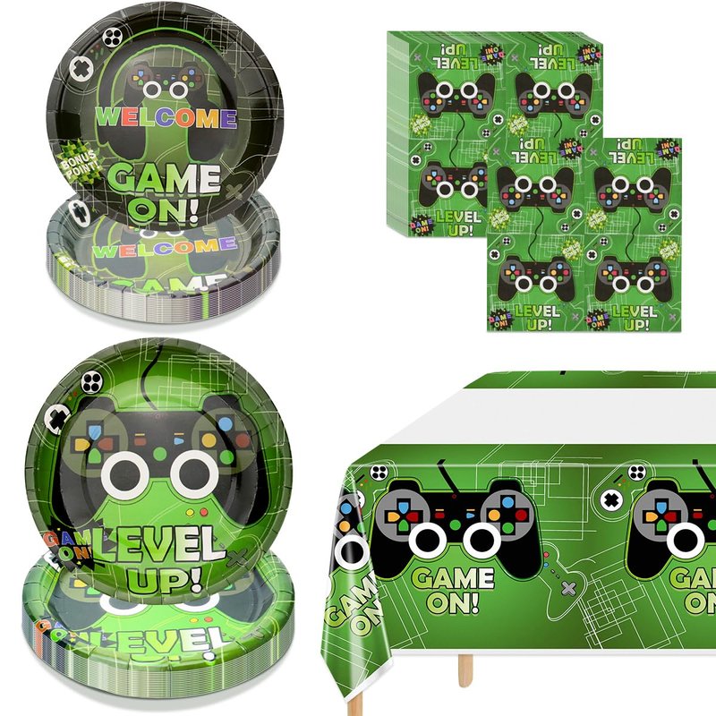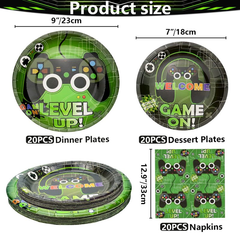 - Valuable Package: This video game themed party supplies includes, 20Pcs dinner plates, 20Pcs dessert plates, 20Pcs napkins, 1Pc tablecloth.