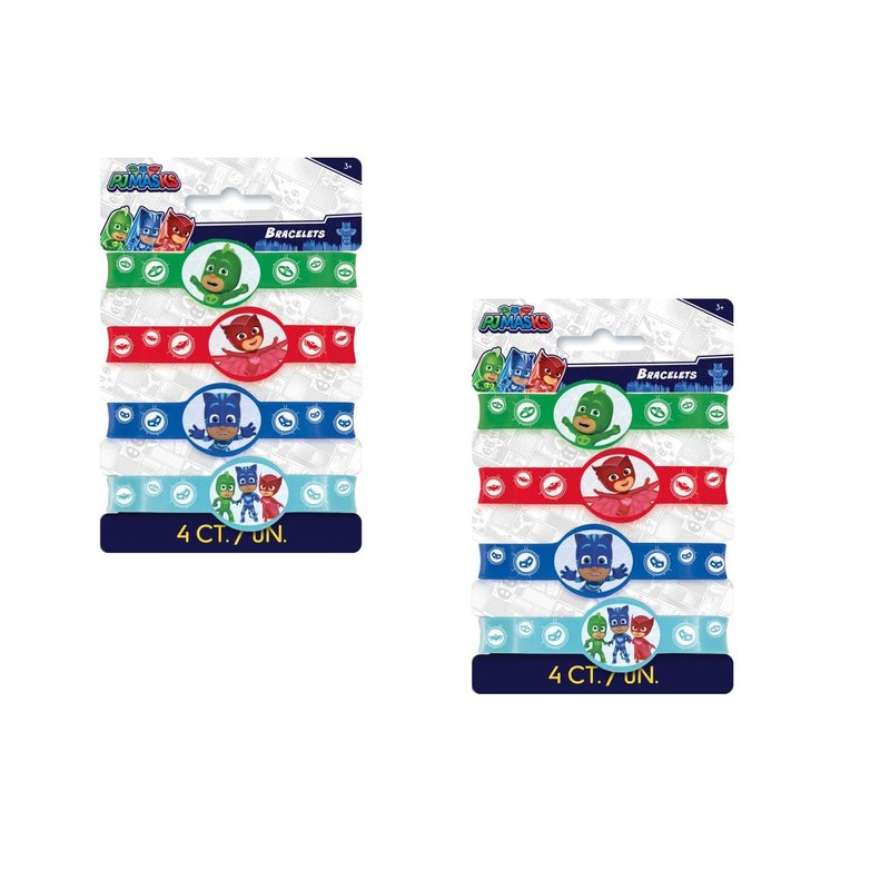 PJ Masks Birthday Party Supplies Favor Bundle Pack includes 8 Plastic Loot Bags 7"x9", 8 Rubber Bracelets, 24 Tattoos, 8 Party Paper Masks.