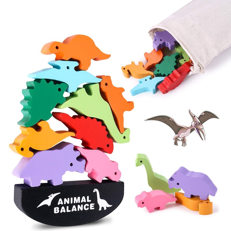 PJDRLLC Dinosaur Toy Wooden Stacking Game: Challenging Banlance Game - Develop Concentration Coordination Problemsoving Skills for Kids Ages 3 Years Up
