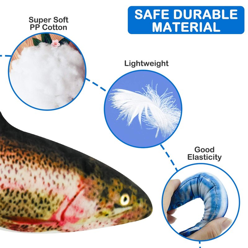 - Safe material -- durablee and resistant to tearing : Cat chew toy are made of soft material. Double seams with no single small stitching design, which will prevent the risk of falling rags and being eaten by the cat, making the fish cat toy safer and more durablee for your pet