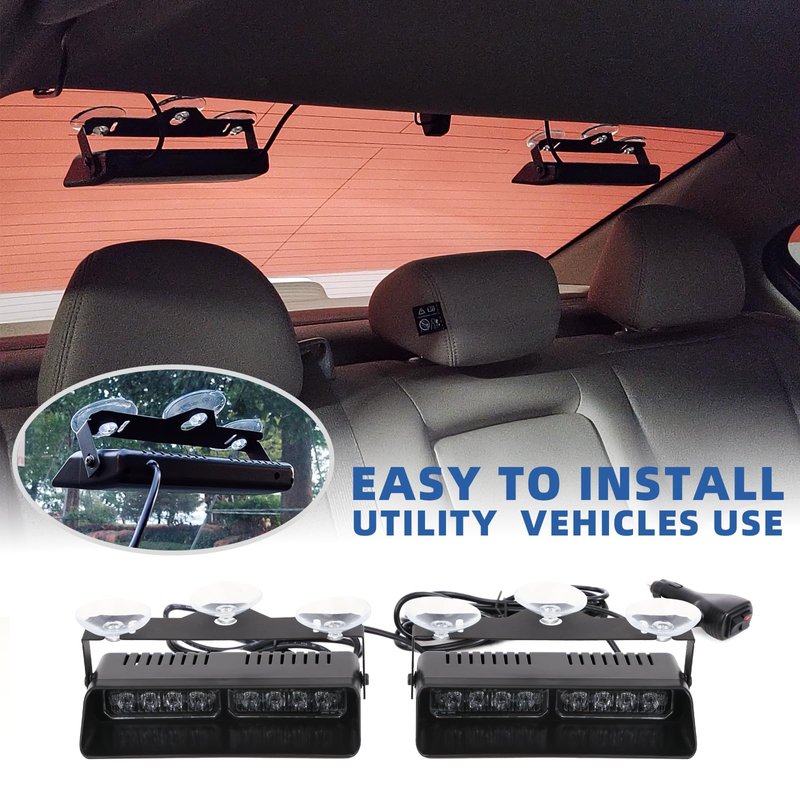 - EASY INSTALLATION - Each emergency dash light bar has 3 strong and stable suction cup brackets are firmly installed on the smooth windshield to prevent the warning light from falling off during driving.
