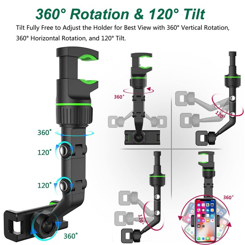 - 【New Version Rearview Mirror Phone Holder】The rear view mirror phone mount has a 360° rotating design, it can be easily adjusted to horizontal or vertical screen, or you can adjust your phone at any angle you want.