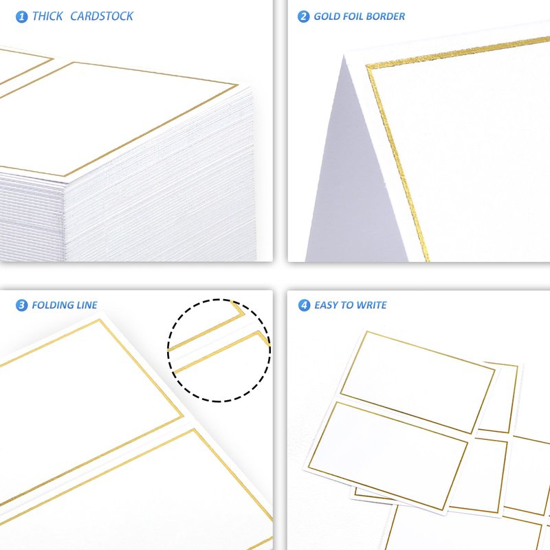 - Includes 120-pieces of small place cards with luxurious gold foil borders, perfect for weddings, boutiques, trade shows or any event that has reserved seating. These cards are blank for customization by hand.