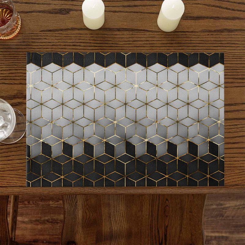Placemat Abstract Black Gray Geometric Plaid Placemats for Dining Table Modern Art Table Mat Home Party Kitchen Table Decorations Decor Set of 6