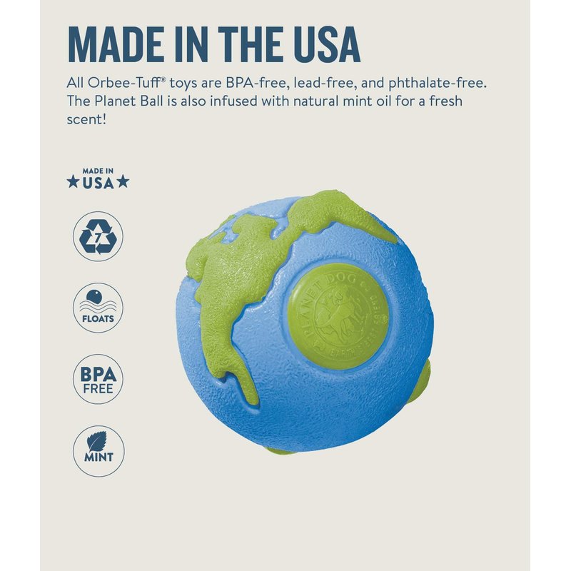 - MADE IN USA: Orbee-Tuff Planet Balls are made from TPE rubber that is BPA, lead, and phthalate-free. Infused with natural mint oil, this bouncy dog toy will also freshen your pup's breath as they chew.