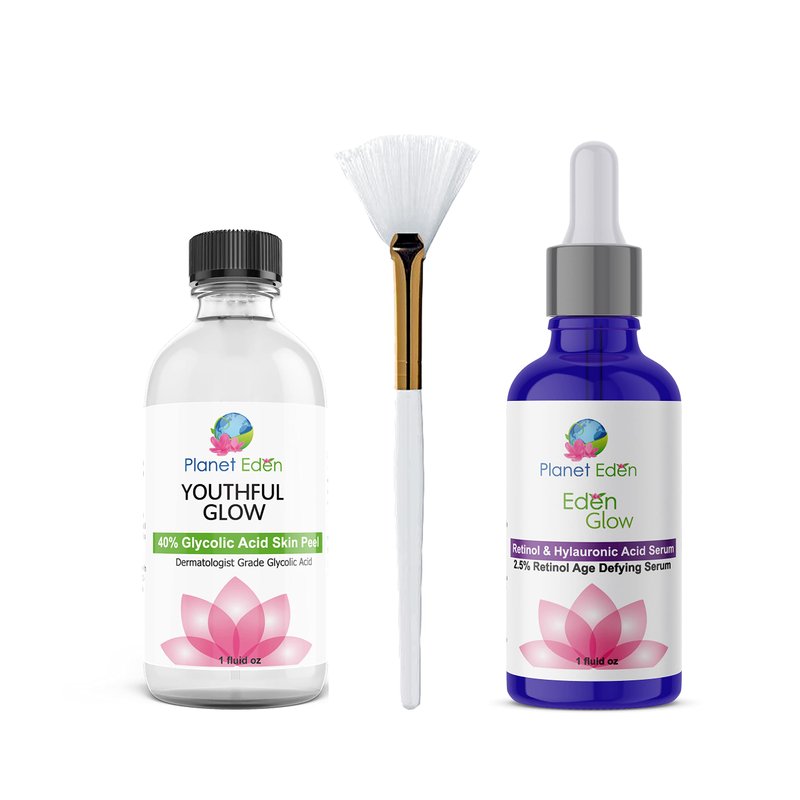 Planet Eden 40% Glycolic Acid Skin Chemical Peel Kit with Hyaluronic Acid and 2.5% Retinol Serum and Fan Brush