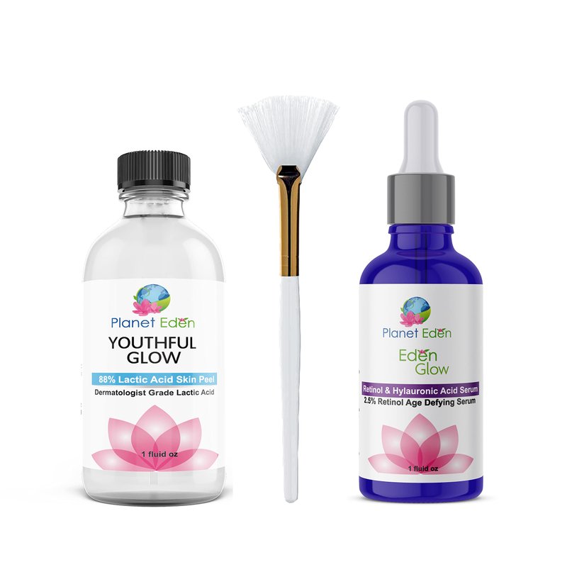 - Kit includes: 1 oz 88% Lactic Acid Skin Peel , 1 oz 2.5% Retinol and Hyaluronic Acid Serum, Detailed Instructions, Professional Fan Brush