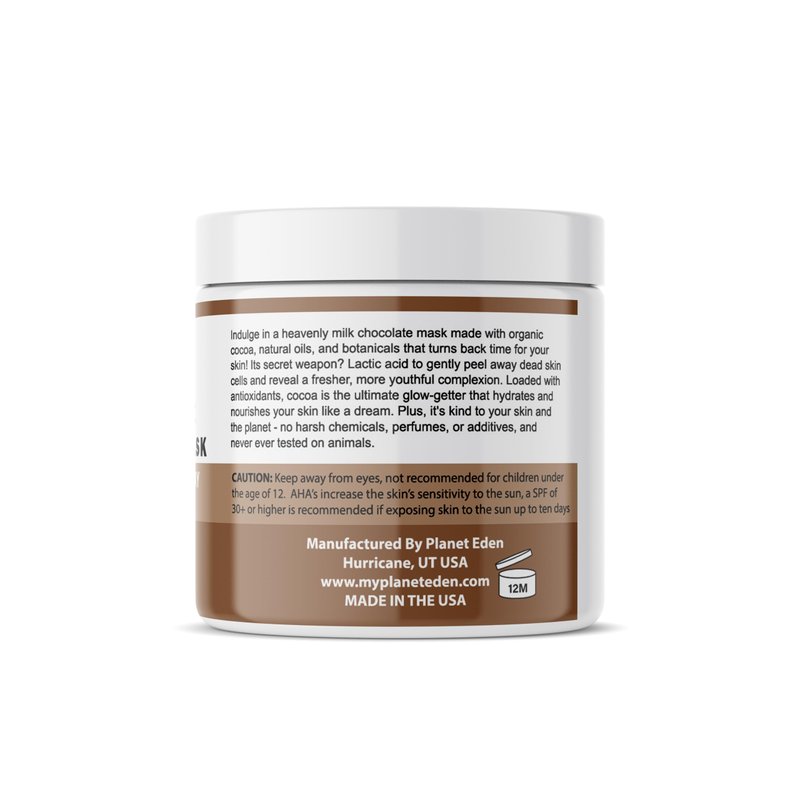 Planet Eden Organic Milk Chocolate and 15% Lactic Acid Facial Skin Mask with Organic Botanicals to Hydrate, Detox and Exfoliate - Spa Quality