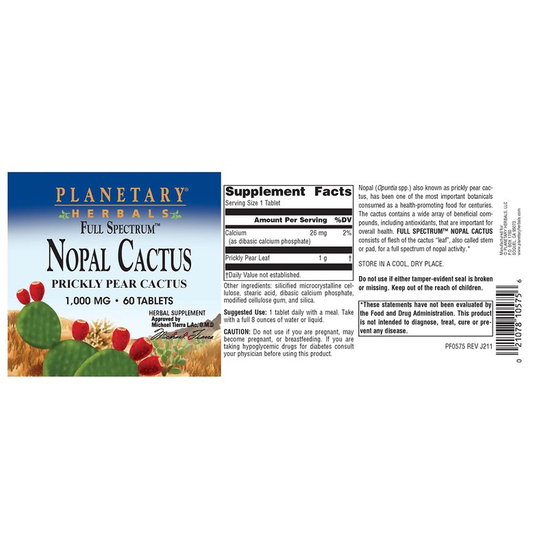 Planetary Herbals Full Spectrum Nopal Cactus 1000mg Prickly Pear Cactus Antioxidant - 100% Natural - 60 Tablets