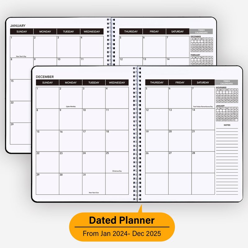 Planner Jan 2024- Dec 2025 Office Calendar Monthly Planner for 24 Monthes - 9 × 11 Time Management Teacher Academic Organizer Hard PVC Cover with Spiral Bound