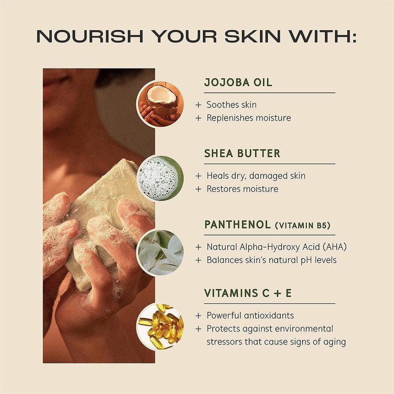 - NOURISHING INGREDIENTS: Formulated with Shea Butter and Jojoba Oil to deeply nourish and comfort dry skin for a refreshing clean and softer skin. Apothecary actives Vitamin C and E provide antioxidant protection against aging environmental damage.