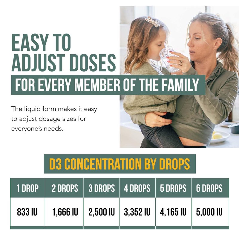 - Max Strength 5000 IU Yet Easy to Adjust Doses: MAX STRENGTH 5000 iu - YET EASY TO ADJUST DOSES:6 single drops of our liquid vitamin D delivers 5000 IU. Doses are also easy to adjust if you desire a smaller or larger amount. The adjustable doses make it easy to administer to children of any age.