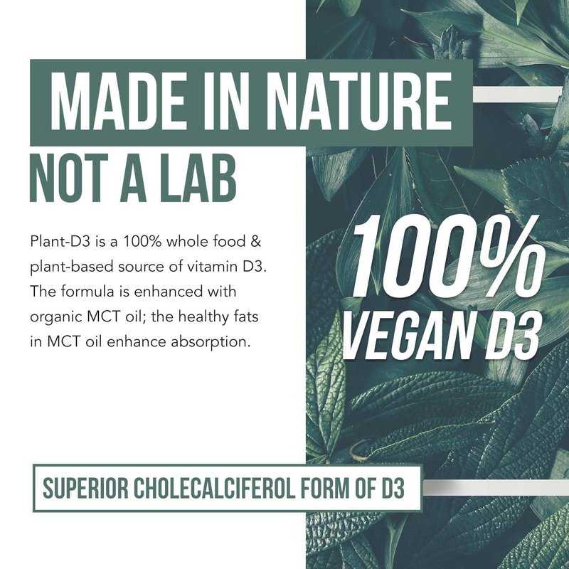 - ORGANIC PLANT-BASED VITAMIN D3 | Plant-D3 is Organic Vitamin D3 derived from sun-grown algae delivered in the optimal Cholecalciferol form.