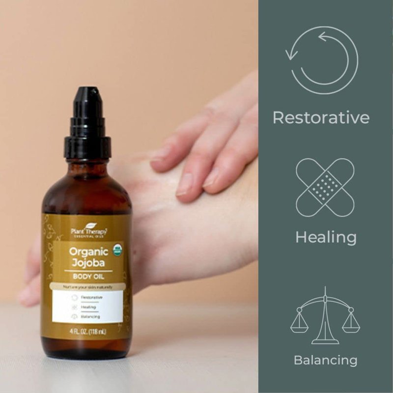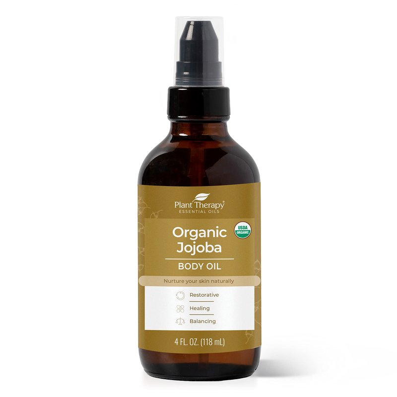 Plant Therapy Organic Jojoba Body Oil 4 fl. oz (118 mL) Base Oil for Aromatherapy, Essential Oil or Massage use, for Hair and Skin, Moisturizing