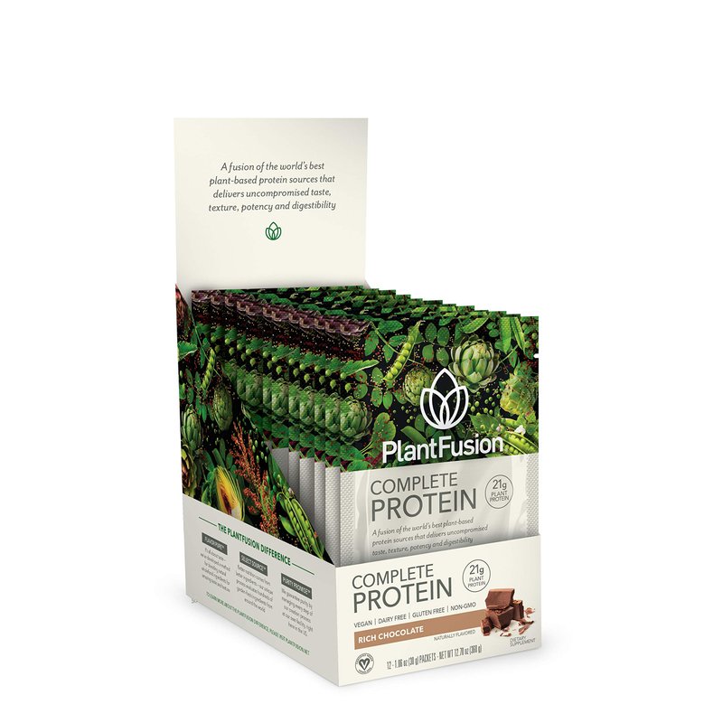 PlantFusion Complete Vegan Protein Powder - Plant Based Protein Powder with BCAAs, Digestive Enzymes and Pea Protein - Keto, Gluten Free, Soy Free, Non-Dairy, No Sugar, Non-GMO - Chocolate Pack of 12