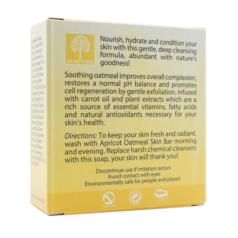 Plantlife Apricot Oatmeal Bar Soap - Moisturizing and Soothing Soap for Your Skin - Hand Crafted Using Plant-Based Ingredients - Made in California 4oz Bar