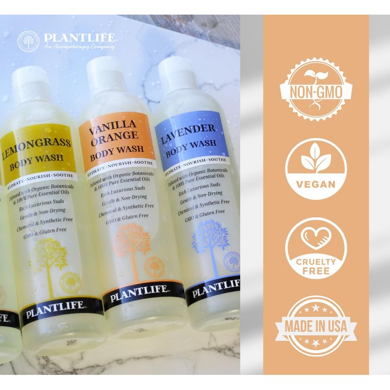 Plantlife Vanilla Orange Body Wash - GMO and Gluten Free Gentle and Moisturizing Body Wash That Contains Only Ingredients Straight from Nature - Made in the USA 14 oz
