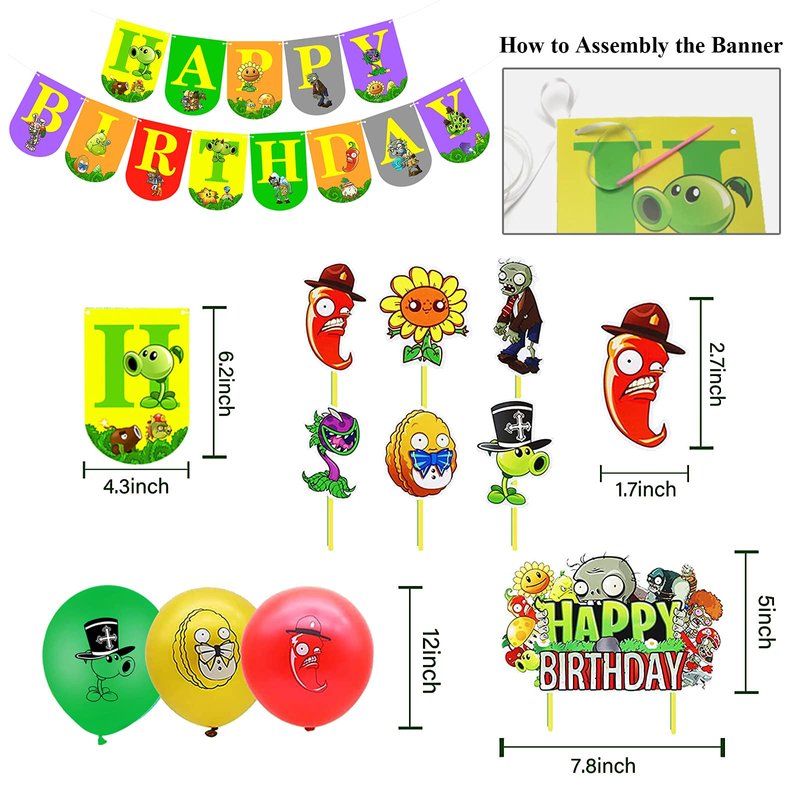 - Make Your Own Unique Party:Plants Party Decorations is a standard party set.Trendy design and special customized party elements for all of game fans. Make your party special and funny. All the game lovers can be immersed in this big game party event.