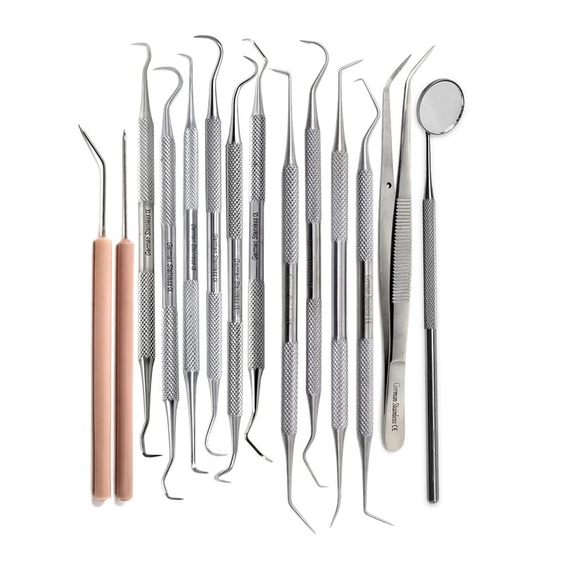 - ✅ VARIETY OF INSTRUMENTS: Set of 14 oral care tools are designed to address different areas of the mouth. The dental pick oral care kit includes double ended probes can help you pinpoint the spots you miss in your daily brushing and flossing.