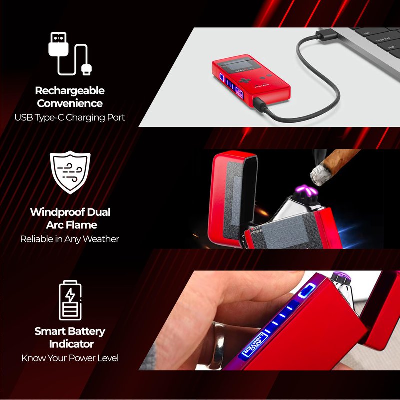 - 🛠️ Durable Build with Sleek Zinc Alloy Design - This rechargeable electric lighter combines style and durability and is built with premium zinc alloy and a matte finish. It's scratch-resistant, pocket-sized, and feels great in your hand. It is designed for daily use and withstands wear and tear while maintaining its cool, gamer-inspired look. This flameless lighter makes a statement whether you're home or on the go. Function meets fashion in every spark.