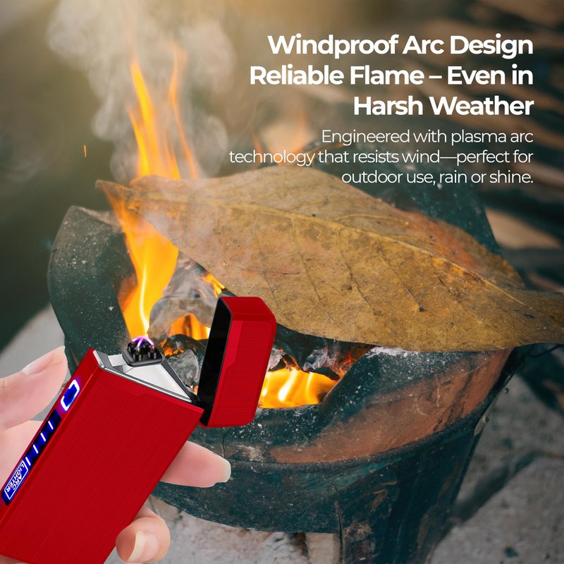 - 🌬️ Windproof Plasma Arc – Lights in Any Weather - No flame? No problem. This windproof electric lighter uses dual plasma arcs to light candles, fireworks, and incense—even in strong winds. No more cupping your hands around a flame. Whether you're outdoors camping or on a breezy balcony, our rechargeable lighter fires up instantly. It is a powerful solution for those living in windy areas. Say goodbye to failed sparks—light up with confidence every time.