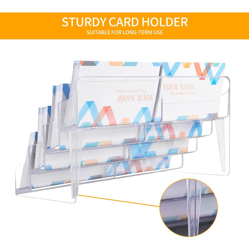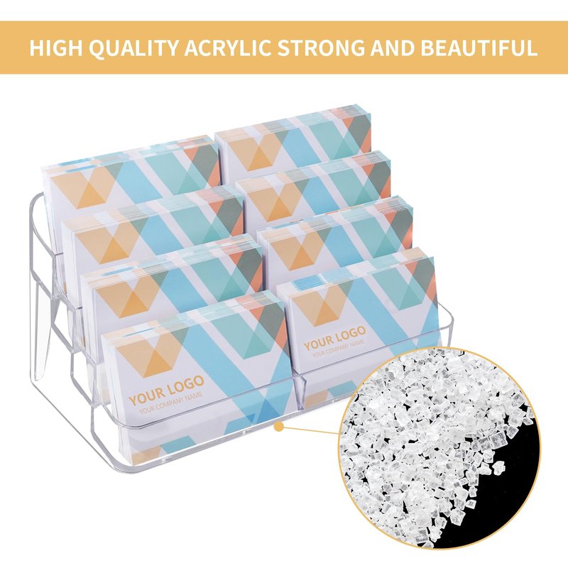 - This business card holder is made of transparent high quality acrylic material, waterproof and beautiful, sturdy and strong, with a reinforced back design to prevent tipping.