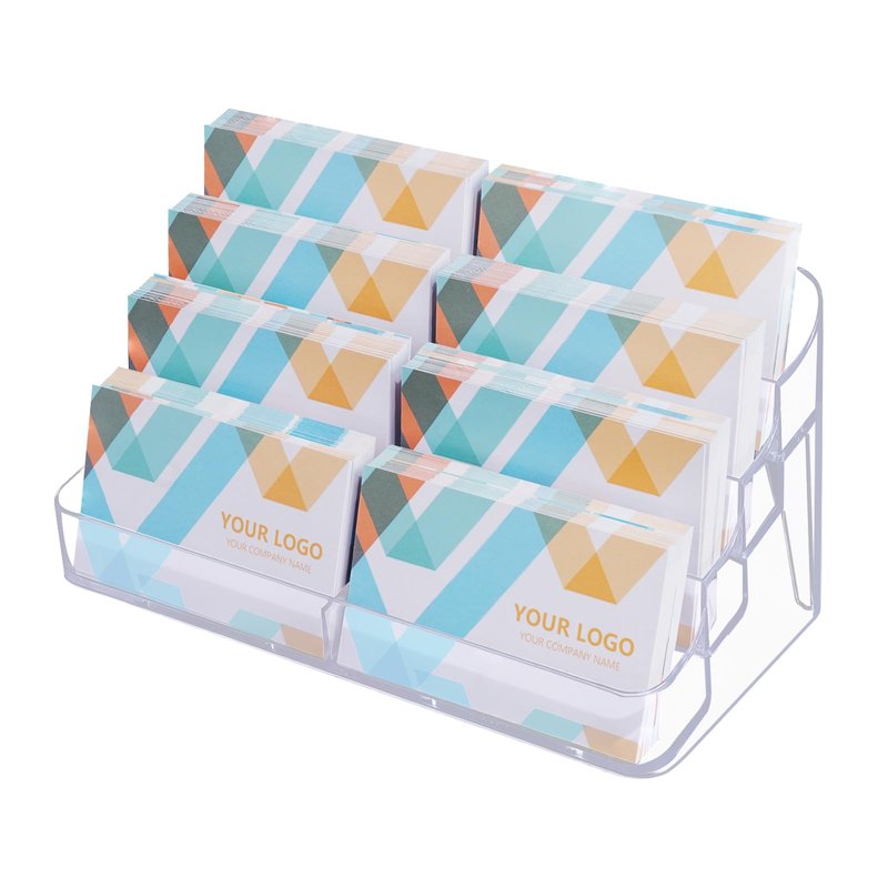 Plastic Business Card Holder for Desk, Clear Acrylic Business Card Organizer, 8 Pockets 4 Layers Business Card Display Stand for Office, 2 Packs