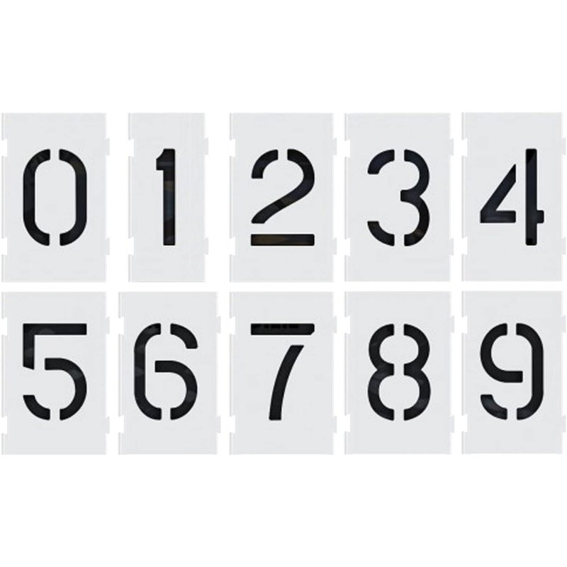 - Their sturdy construction allows repeated use, providing consistent and professional-grade markings. Perfect for contractors, municipalities, or property managers, our 0-9 numeral stencils offer ease in creating visible and standardized numerals for efficient traffic flow, designated parking, or other pavement applications. All sizes are approximate.
