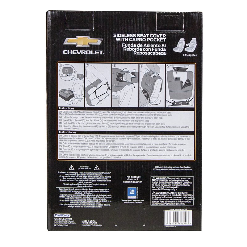 Plasticolor 008599R01 Chevy Chevrolet Logo Universal Fit Car Truck or SUV Sideless 3-Piece Seat Cover w/Head Rest , Black