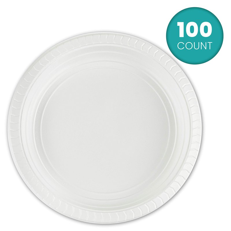 - Quantity: 100 count of 7'' inch Round Plastic Party Plates provides ample Dinnerware for all guests, allowing for less worry about running out