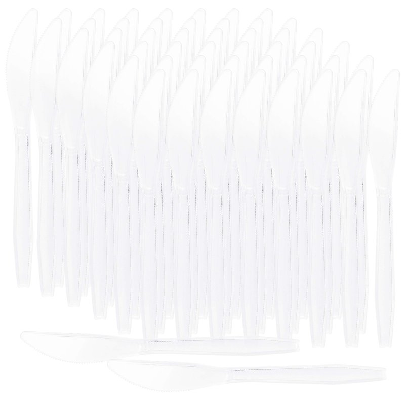 Plasticpro Disposable Plastic cutlery Medium Weight Knives Silverware Clear Utensils Perfect for birthday party's, weddings, take-out restaurants, stadiums, outdoor barbecues,holidays, family gatherings,picnic, office use, and more,& for every day use.