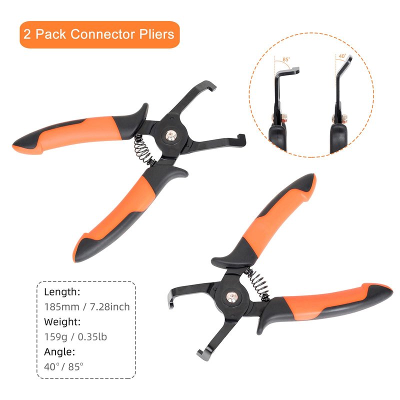 - Offset Jaws Design: The low-profile jaws design with 40 and 85 degree bend for easier access to tight space. The 7.28-inch length for more leverage work, perfect for working on stuck connectors, saving your fingers and frustrations. With these connector clip removal tools, your vehicle repairs will be done in no time!