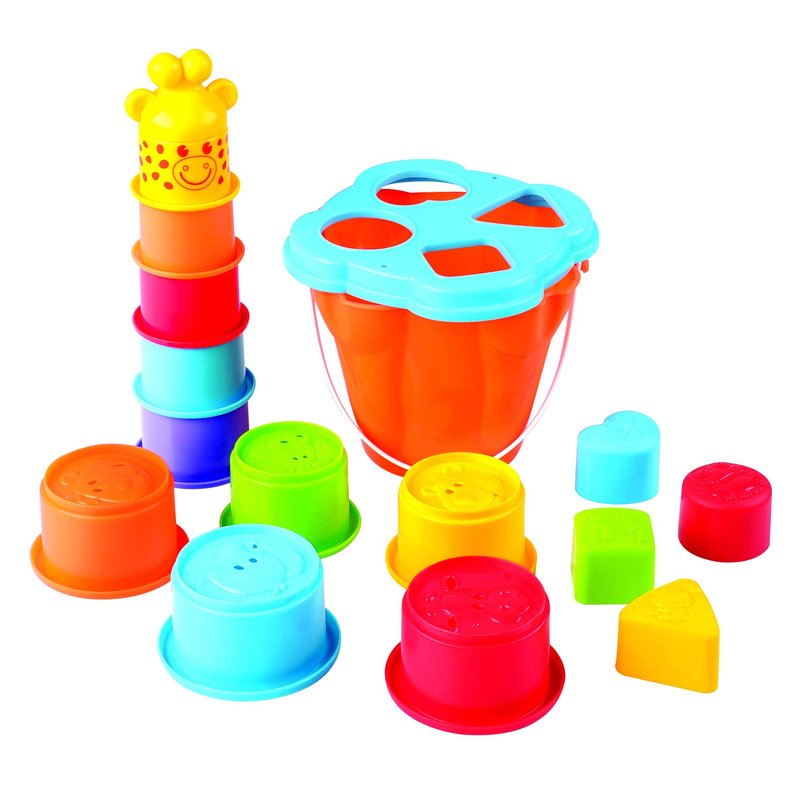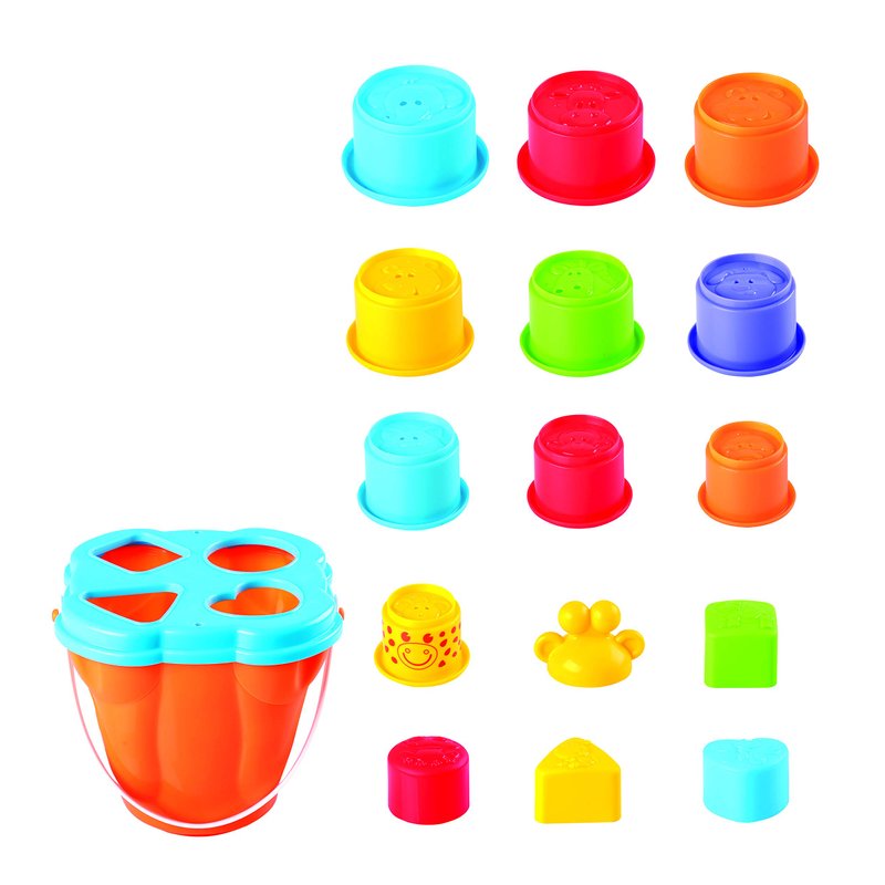 - ✔ develop motor skills: with stacking cups and shape sorters activity to Train your baby's motor and recognition skills! All bits and bobs can be stored inside the bucket. Not only are these baby stacking cups for fun but also for beach and pool time as well. In the bath, exercise your brain and stimulate awareness of color.
